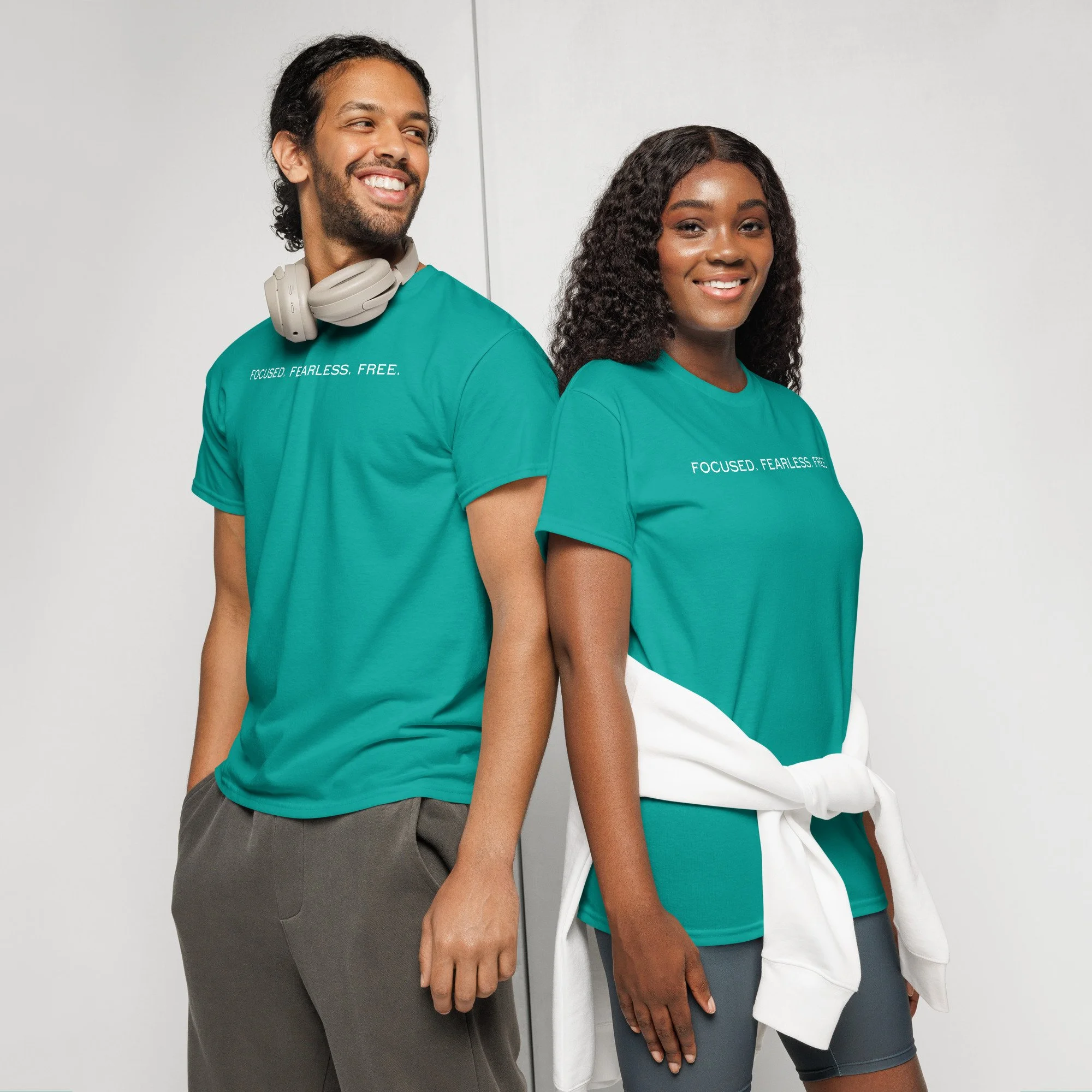 Shop › Focused. Fearless. Free. Tee Image 1 of 12 Image 2 of 12 Image 3 of 12 Image 4 of 12 Image 5 of 12 Image 6 of 12 Image 7 of 12 Image 8 of 12 Image 9 of 12 Image 10 of 12 Image 11 of 12 Image 12 of 12 Focused. Fearless. Free. Tee from $20.00 Three words. One posture. This staple tee is a quiet reminder to live with clarity, courage, and conviction—unburdened by fear or distraction. Simple. Intentional. Everyday wear. Color: Select Color Black Navy Purple Maroon Forest Green Red Royal Kelly Green Orange Jade Dome Gold Carolina Blue Size: Select Size S M L XL 2XL 3XL 4XL 5XL Add to Cart Added! Three words. One posture. This staple tee is a quiet reminder to live with clarity, courage, and conviction—unburdened by fear or distraction. Simple. Intentional. Everyday wear.